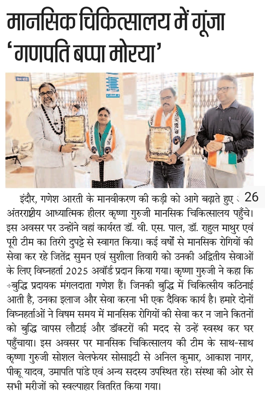 अंतरराष्ट्रीय आध्यात्मिक हीलर कृष्णा गुरुजी मानसिक चिकित्सालय पहुंचे।